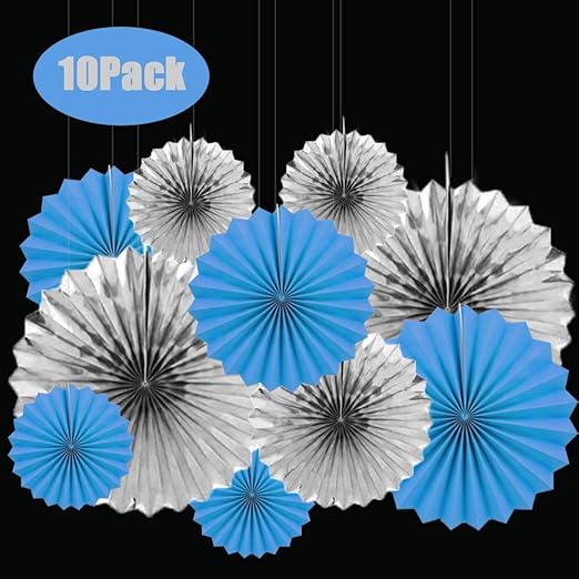 Amazon Com Aimto 10pcs Navy Blue And Silver Hanging Paper Fans