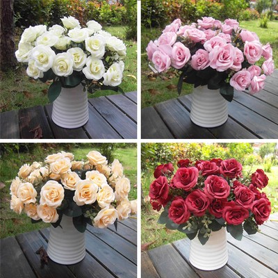 Artificial Rose Silk Flowers 12 Heads Leaf Wedding Party Garden