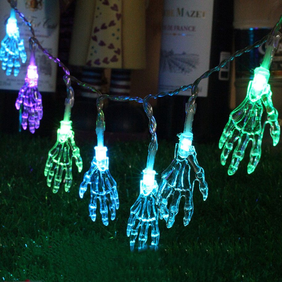 Light String With Skeleton Hand Halloween Party Garden Home
