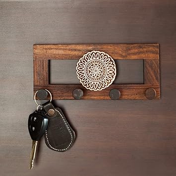 Exclusivelane Flower Block Key Holder In Sheesham Wood Wooden