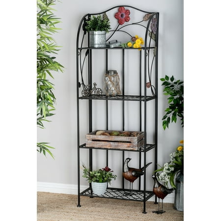 Decmode Large Indoor Outdoor Metal Shelf With Flowers