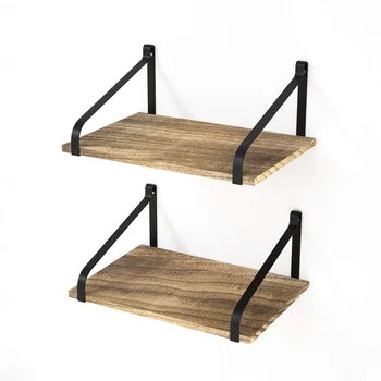 Oem Factory Rustic Wood Wall Floating Shelves With Metal Frame