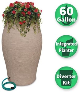 Rescue 60 Gal Sandstone Decorative Rain Barrel Kit With Planter