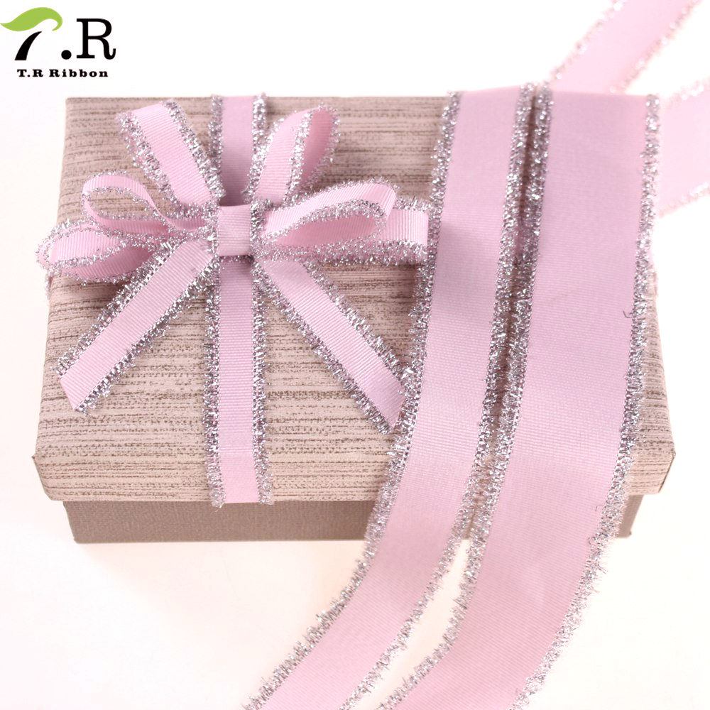 100 Yards Roll Pink Silver Purl Grosgrain Fringe Ribbon Decorative