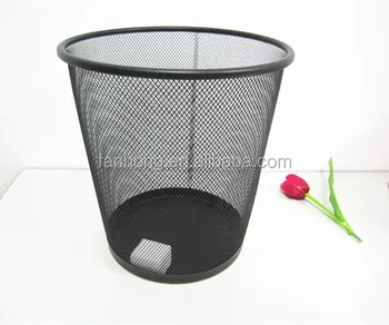 Household Round Black Paper Trash Can Mesh Waste Bin Wire Metal