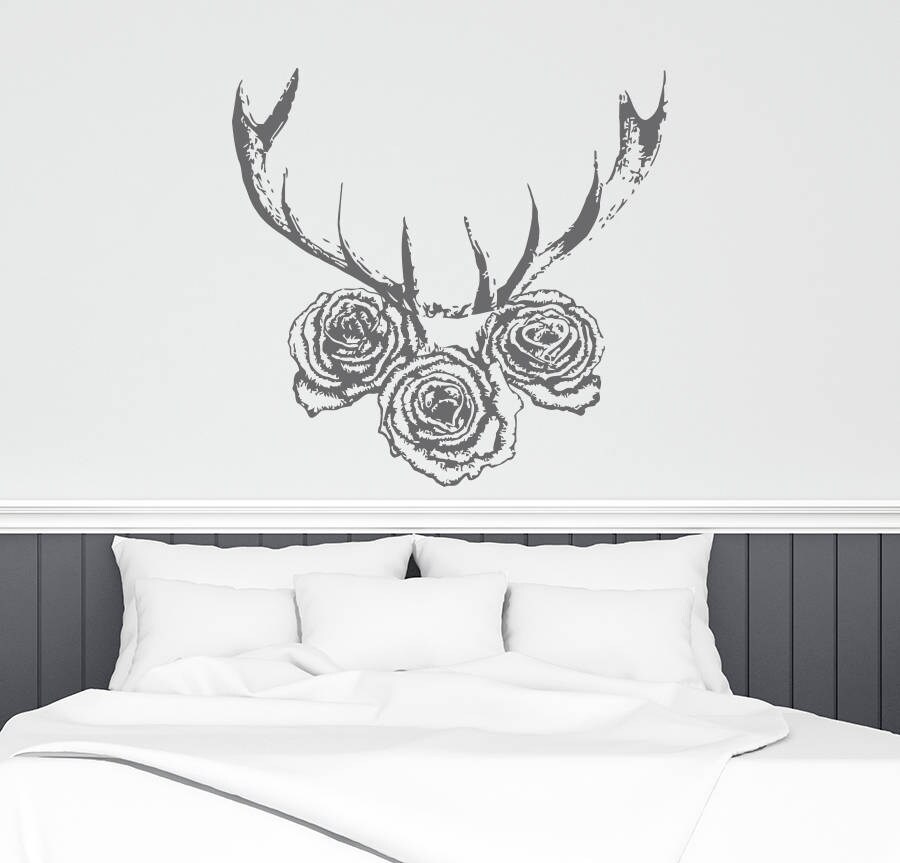 Deer Antler Wall Decals Deer Wall Decal Flowers Wall Decor Etsy
