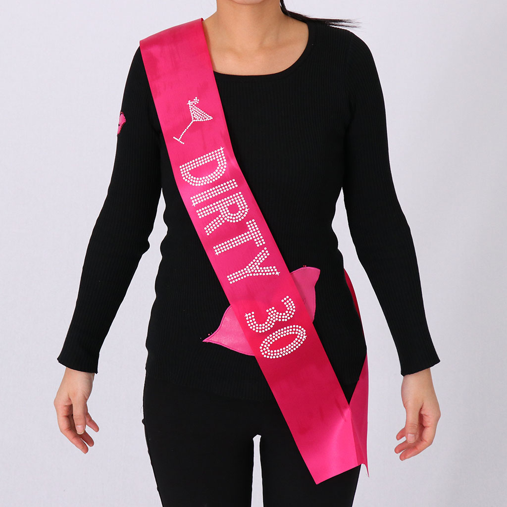 Hot Pink Satin Sash Dirty 30 White Words For Women S 30th Birthday