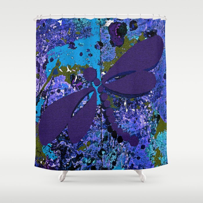 Dragonfly Shower Curtain Uneven Big Repetitive Dragonfly Figures