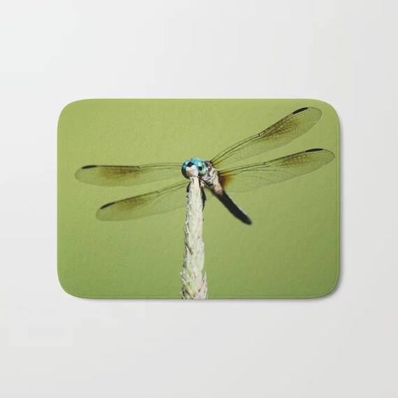 Green Dragonfly Bath Mat Dragonfly Bathroom Decorations Etsy