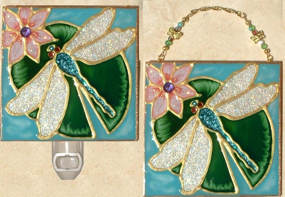 Artisan Painted Dragonfly Gift Stained Glass Night Light Plug Etsy