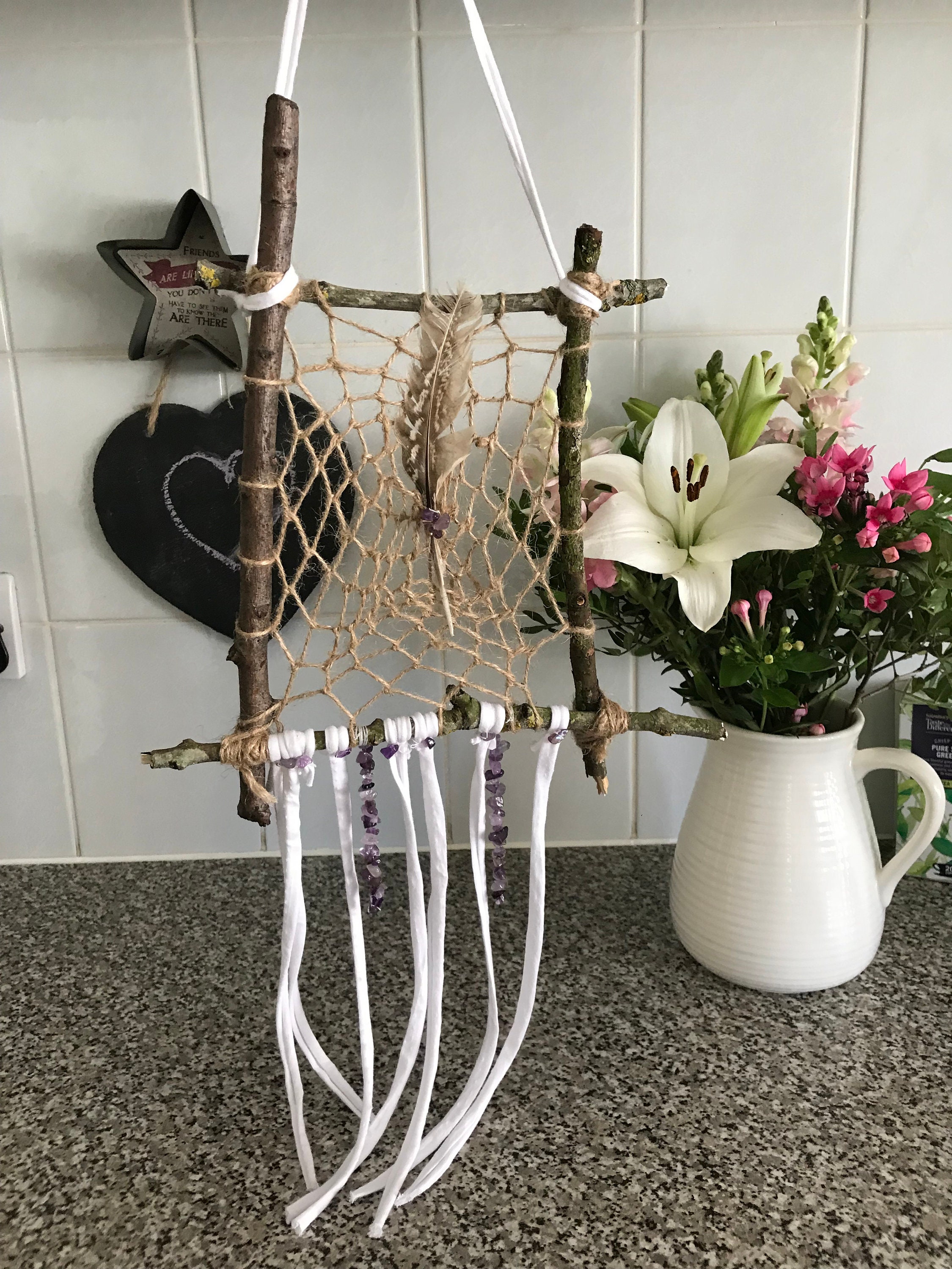 Handmade Amethyst Dream Catcher Crystal Wall Hanger Room Etsy