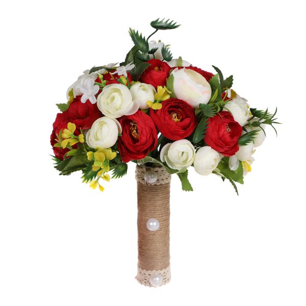 Red Beige Bridesmaid Holding Wedding Bridal Artificial Silk Rose