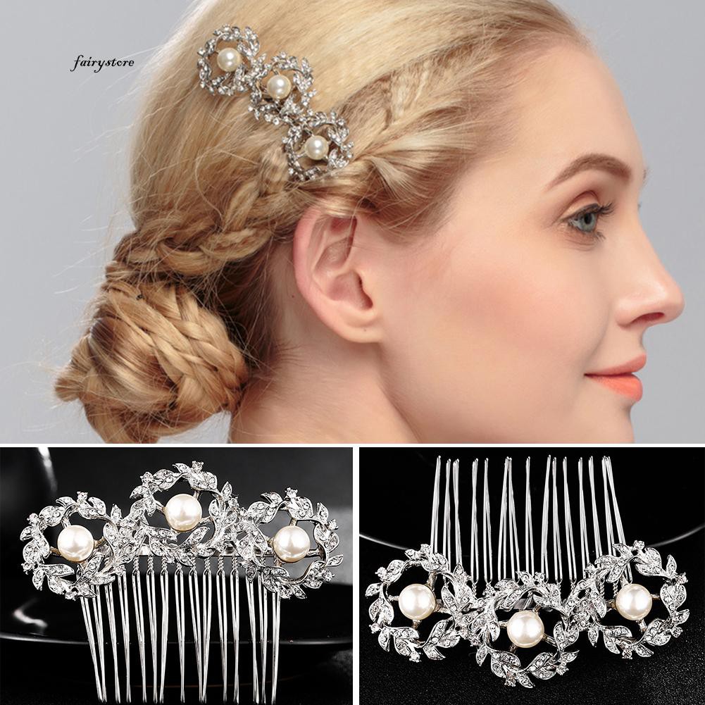 Fairy Faux Pearl Rhinestone Hair Decor Tuck Comb Bride Wedding