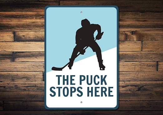 Amazon Com Rfy9u7 Hockey Decor Puck Stops Here Sign Hockey Player