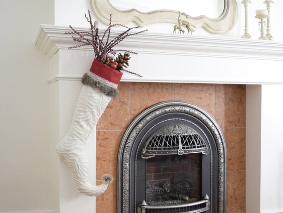 Luxury Christmas Stocking Elf Frimas Off White Red Brown Fur Etsy