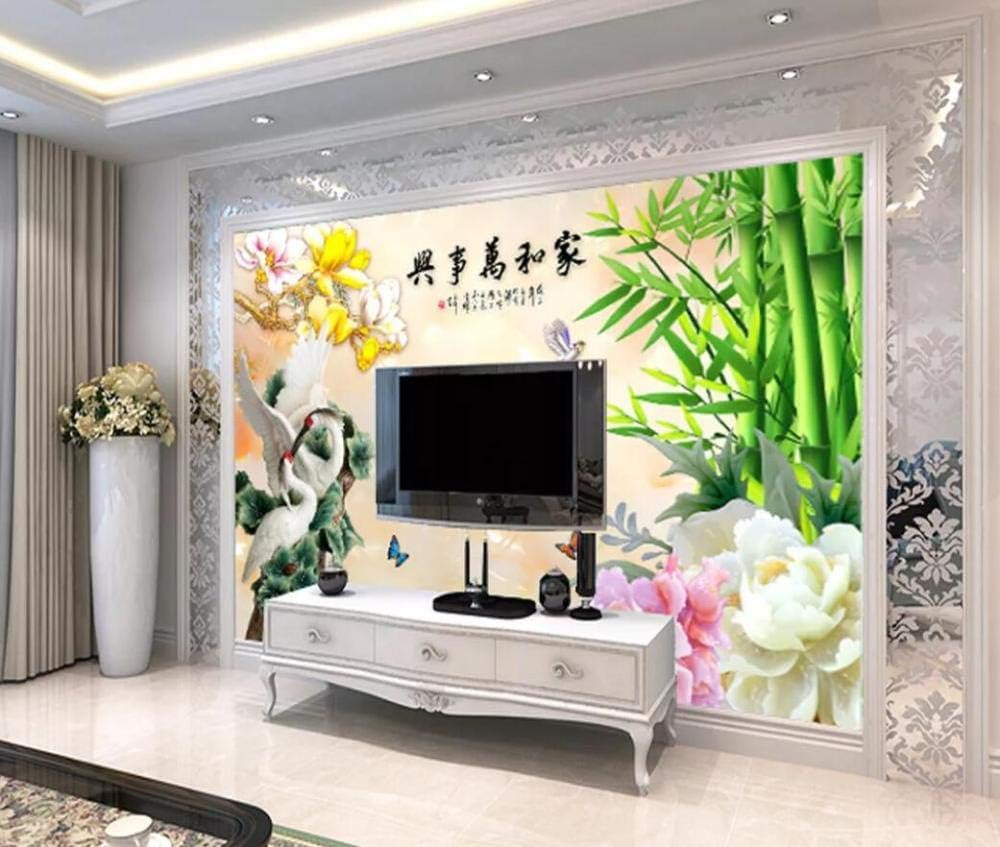 Wallpaper 3d Mural Jade Carving Peony Bamboo Crane Magnolia