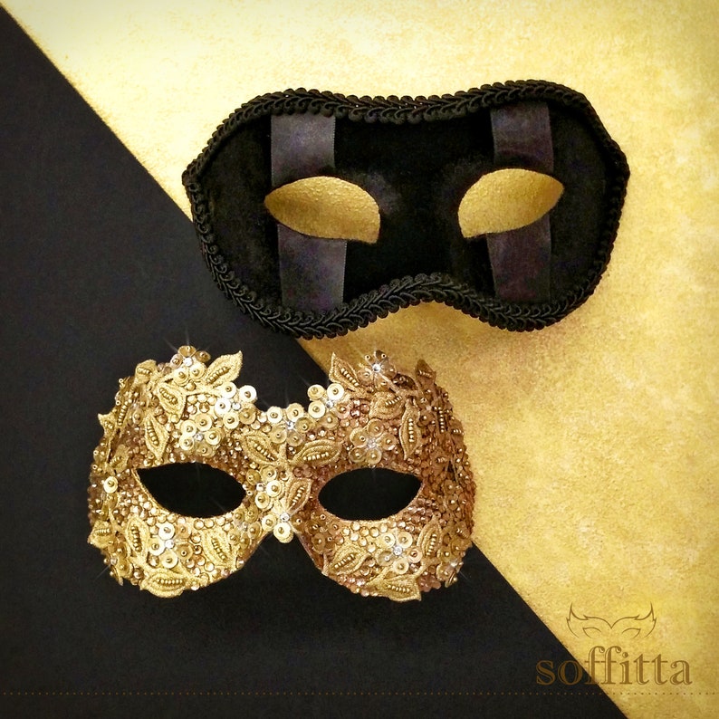 Couple Mardi Gras Venetian Masquerade Masks Set Pretty Party
