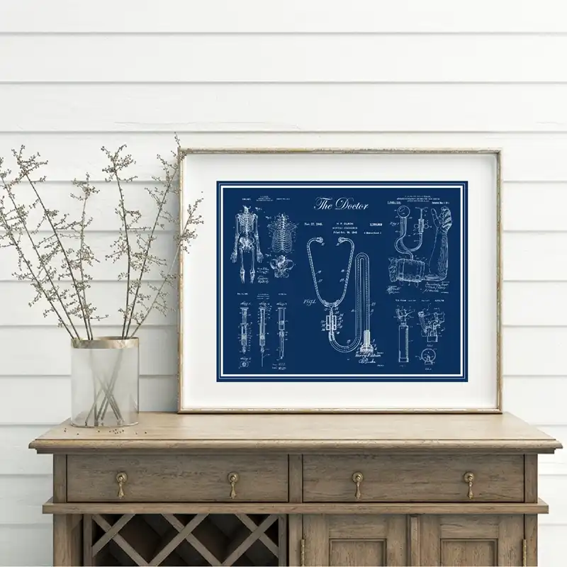 Doctor Office Decor Syringe Stethoscope Blueprint Print Posters