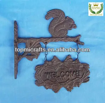 Squirrel Home Decor Cast Iron Wall Decoration Welcome Board