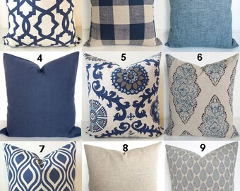 Tan Pillows Navy Blue Throw Pillow Covers Dark Blue Pillows Etsy