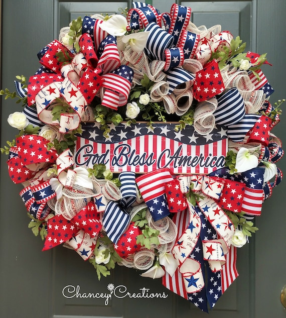 Patriotic Wreath God Bless The Usa Patriotic Door Wreath Red