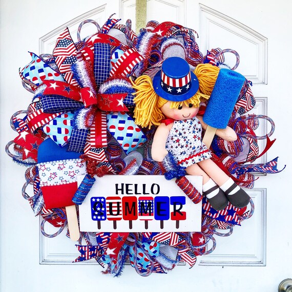 Patriotic Wreath Patriotic Decor Patriotic Door Hanger Etsy