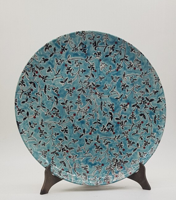Turquoise Decorated Dish Ceramic Plates Wall Decor Wall Etsy