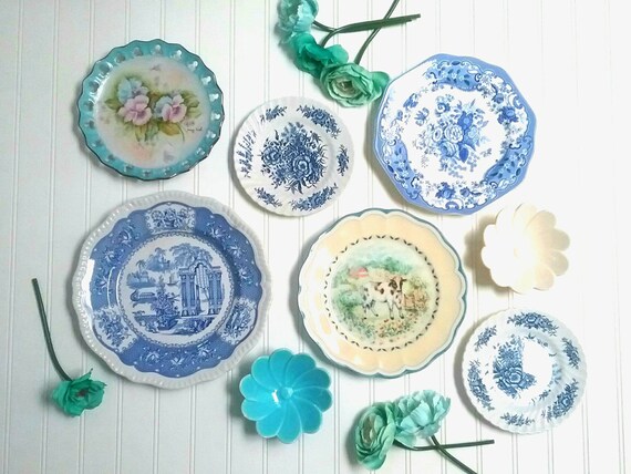 Cottage Blue And White Farmhouse China Plate Wall Decor Set Of Etsy