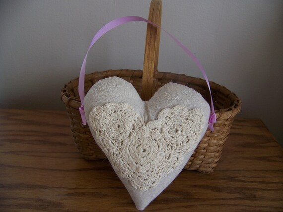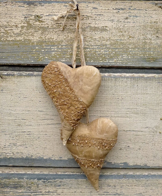 Primitive Shabby Heart With Lace Heart Hanger Lavender Ribbon Etsy