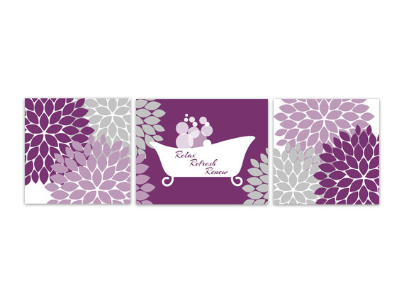 Bathroom Canvas Or Prints Purple Bathroom Decor Relax Soak Etsy