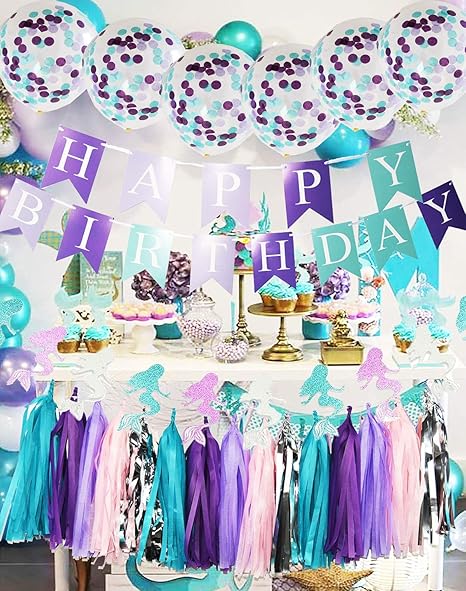 Delaiwen Purple Teal Mermaid Party Supplies Mermaid Teal Purple