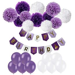 Purple Silver Party Decorations Tissue Pom Pom Happy Birthday