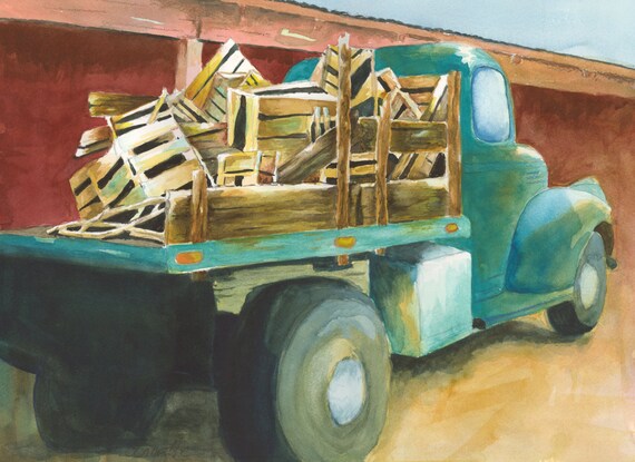 Old Truck Wooden Crates Ranch Wall Decor Western Watercolor Etsy