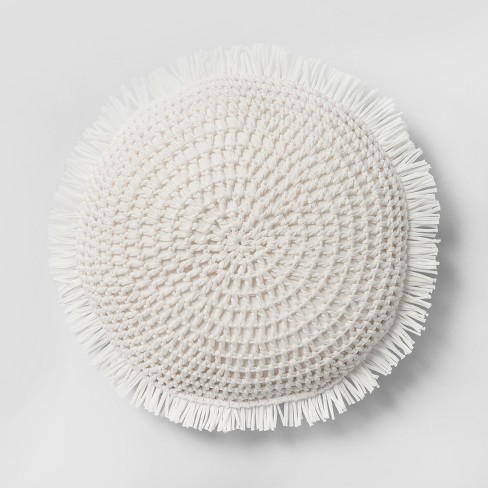 Knit With Fringe Round Throw Pillow White Opalhouse Target