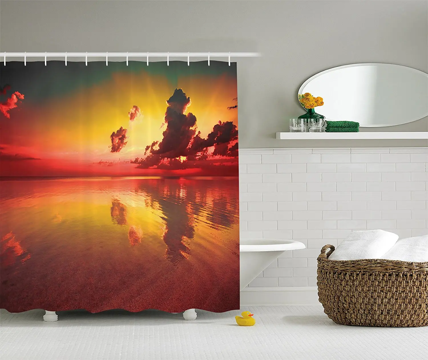 Seashore Decor Shower Curtain Sunrise Over And Sea Sunny View