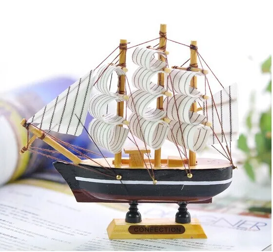 13cm Handmade Crafts Mini Wooden Model Ship Mediterranean Style
