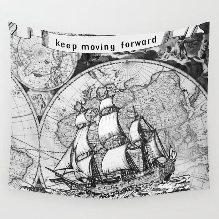 Ship And Map Home Decor For Him And Her Wall Tapestry By