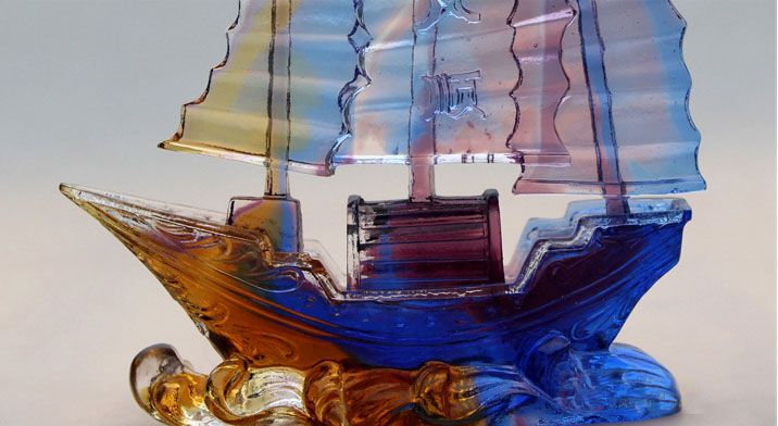 China Colorful Lifelike Sea Sailing Ship Decorative Art Glass