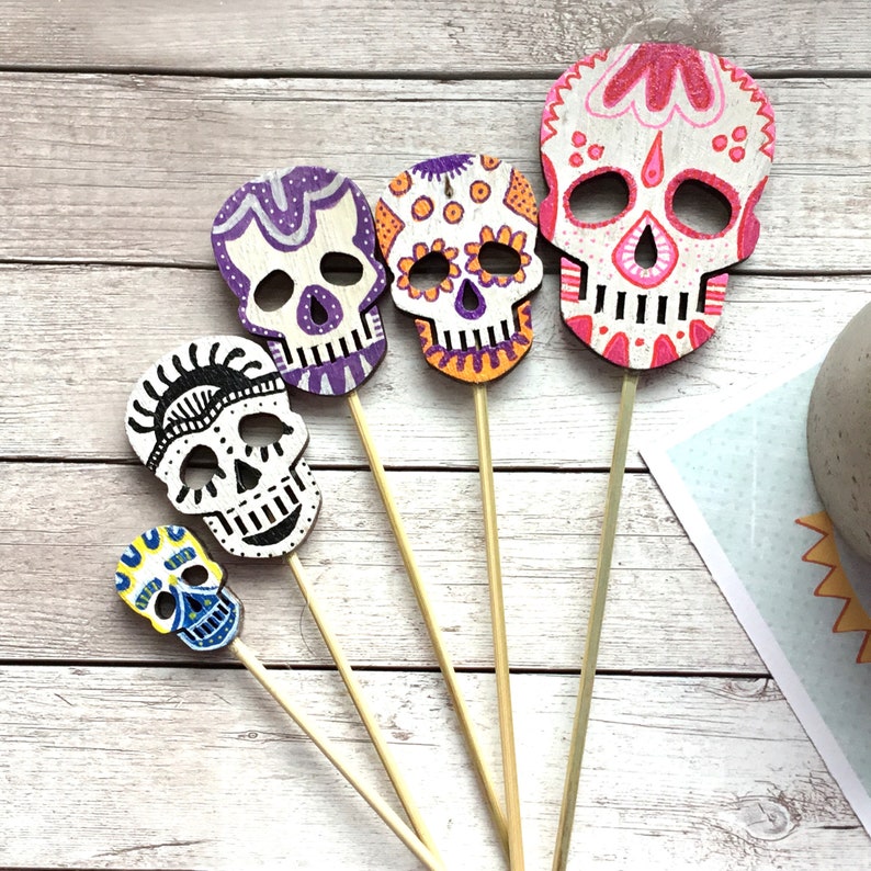 Day Of The Dead Props Painted Skull Decoration Set Of 5 Etsy