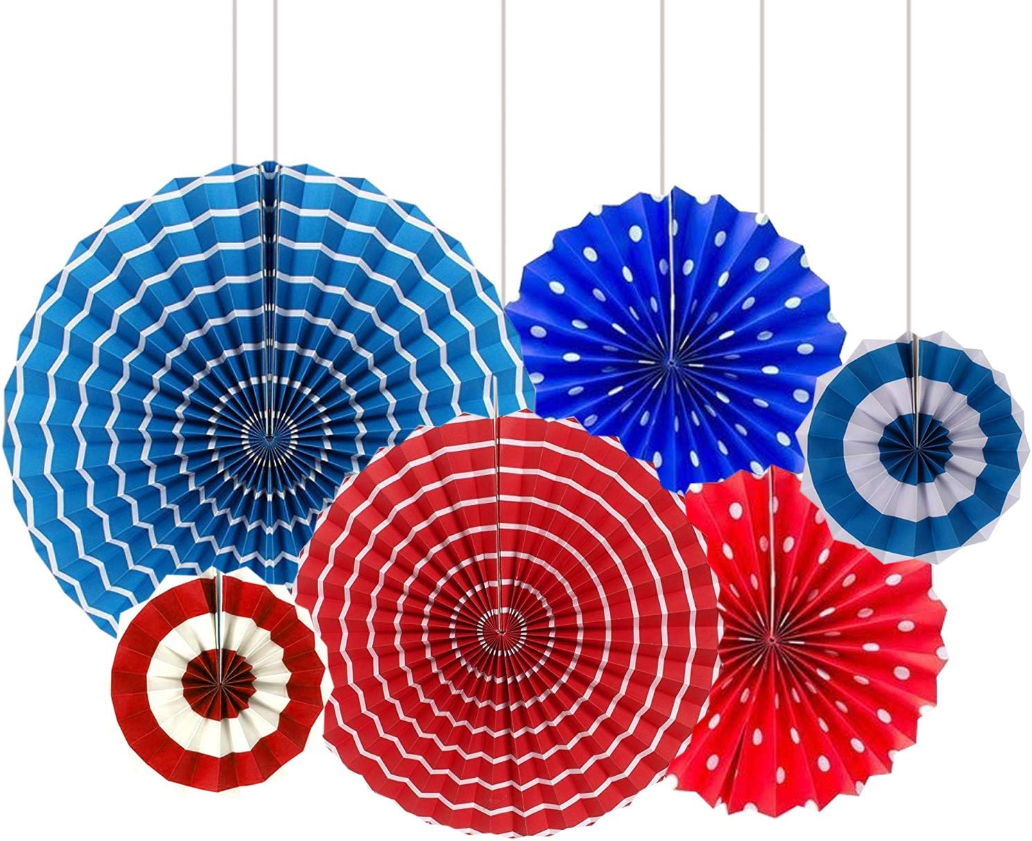 6pcs Red And Blue Paper Fans For Boys Birthday Decoration Items
