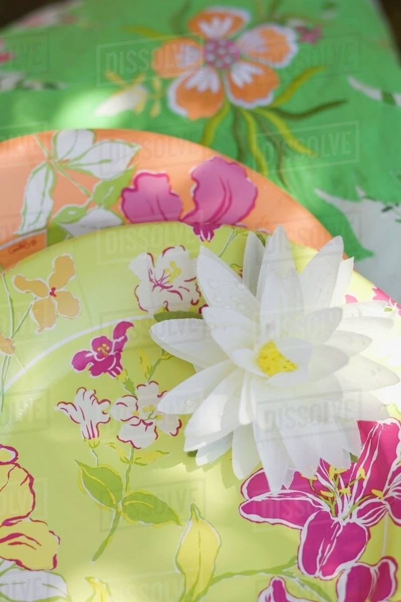 Summer Party Decorations Water Lily Paper Plates Stock Photo