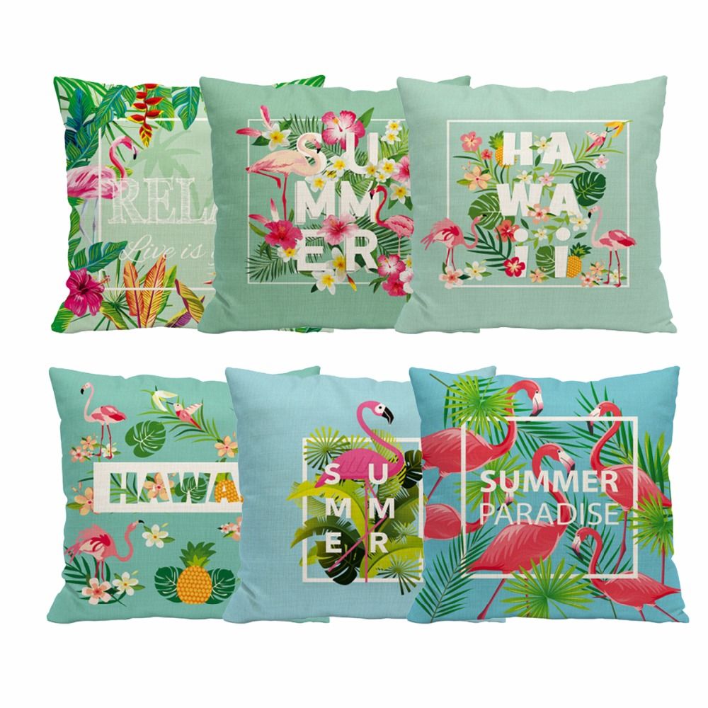 Laphil Flamingo Party 45x45cm Cotton Linen Cushion Cover Hawaiian
