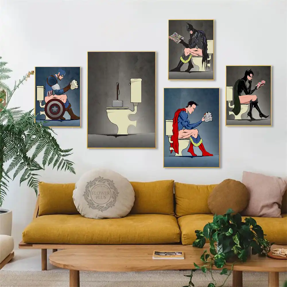 Art Decor Batman Superman Joker The Superhero On The Toilet