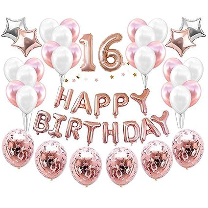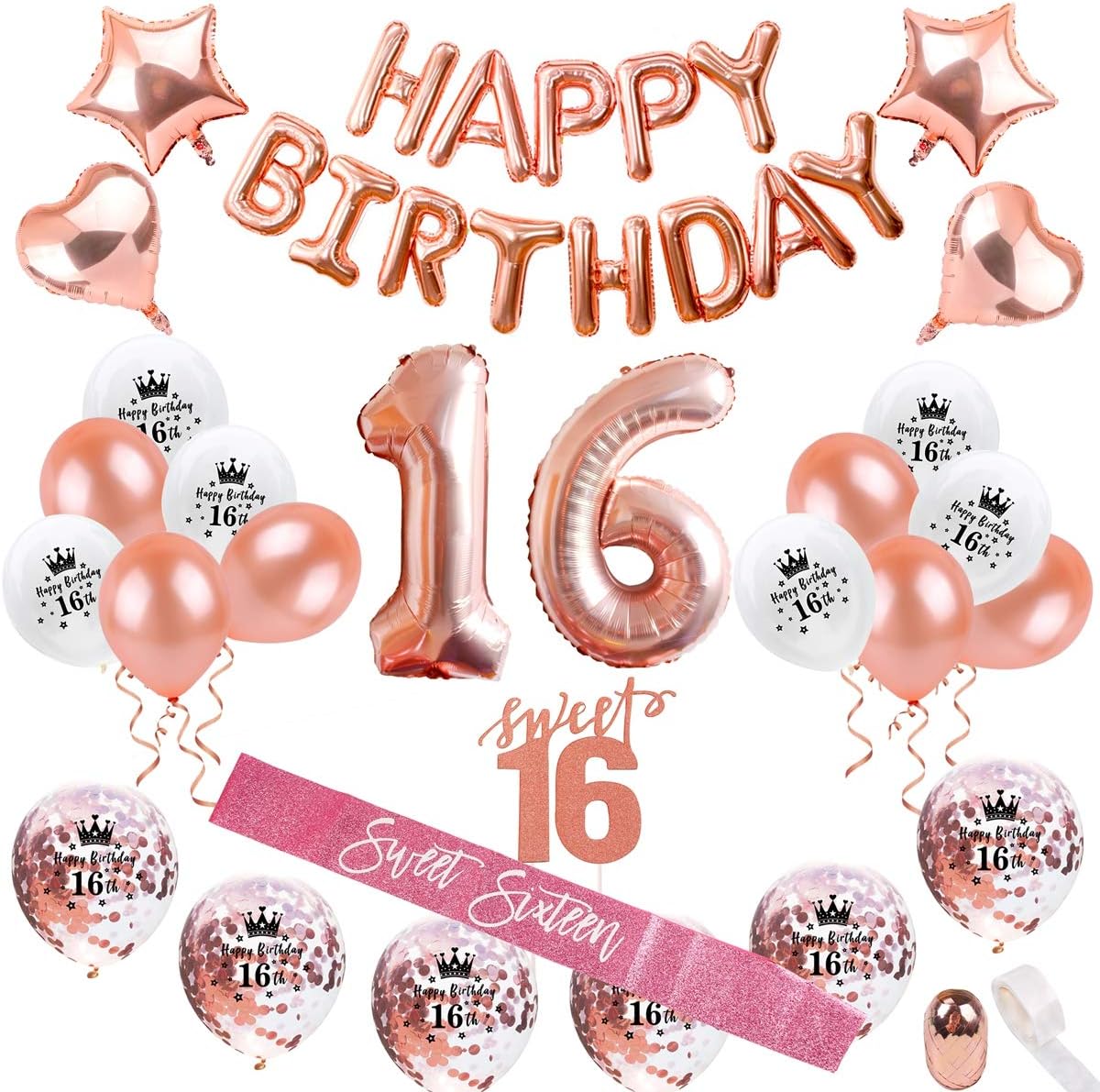 Fengrise Rose Gold Birthday Party Decorations Adult 16th Happy