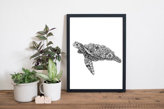 Turtle Print Hand Drawn Home Decor Wall Art Etsy