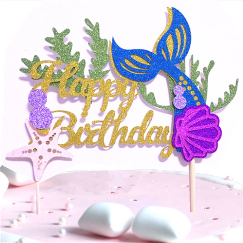 Weigao Little Mermaid Party Cake Toppers Happy Birthday Cake