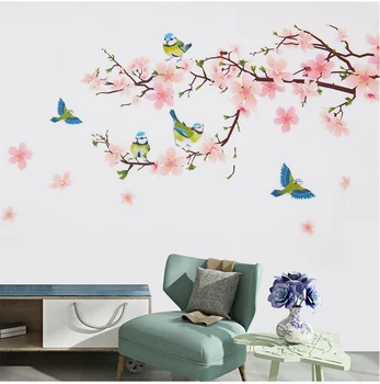 Shop Plum Flower Blossom Wall Stickers Pink Flores Birds Wall