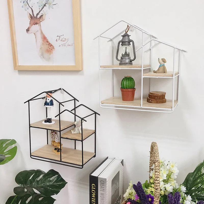 Home Living Display Furniture Iron Grid Wall Shelf Wooden Floating