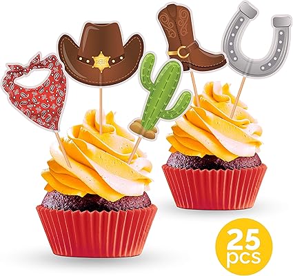 Cowboy Party Cupcake Toppers Western Theme Birthday Or Baby