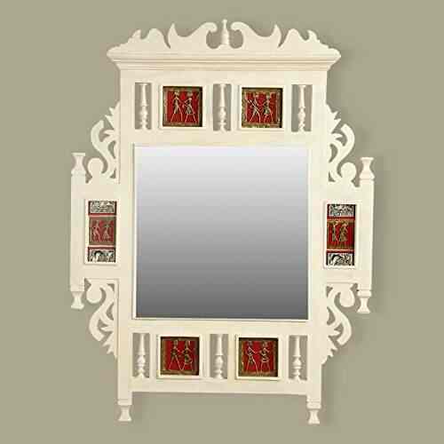 Buy Solid Wood Wall Mirror In White Color By Artisans Rose Online